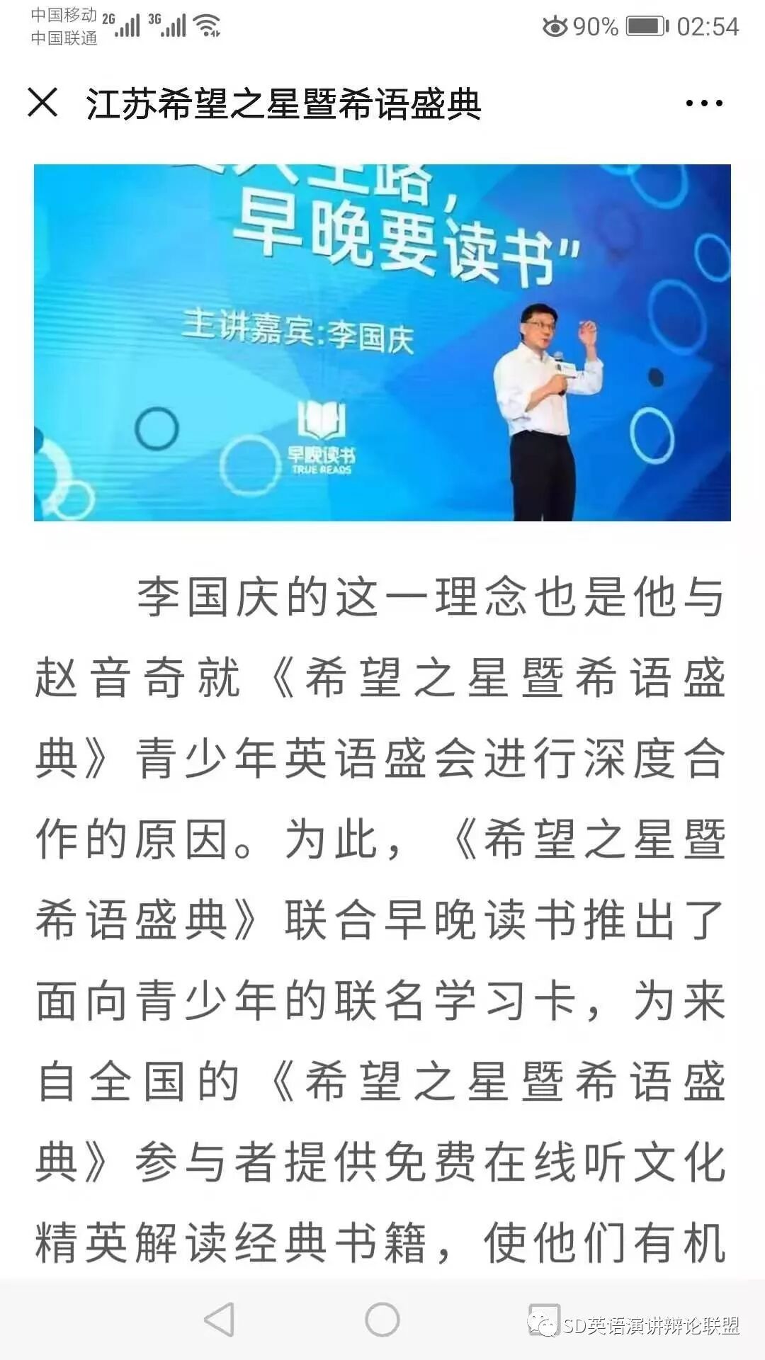 李国庆同志被踢出当当董事会后,成立了一个“早晚读书”。我不知道这个“早晚读书”是干啥的,但因为和英语演讲赛事扯上了关系,频频为“希望之星暨希语盛典”站台,我才开始注意: