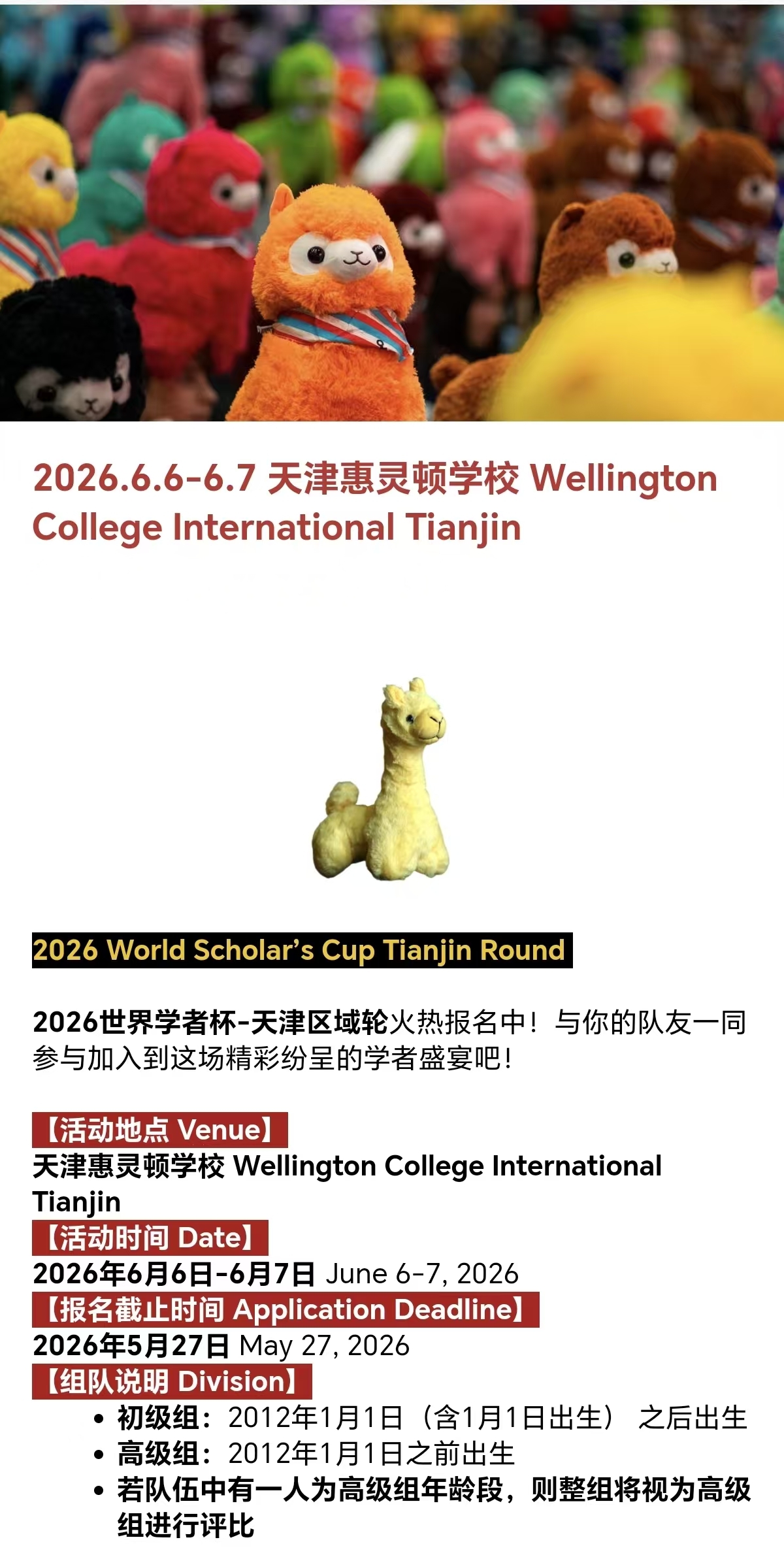 2012年1月1日及之后出生的学生参加JuniorDivision 初级组/Junior Division;
