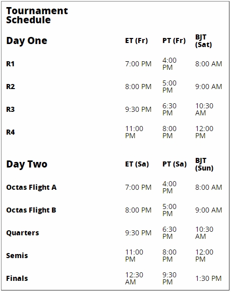 Pairings will be released approximately 15 minutes prior to start time.