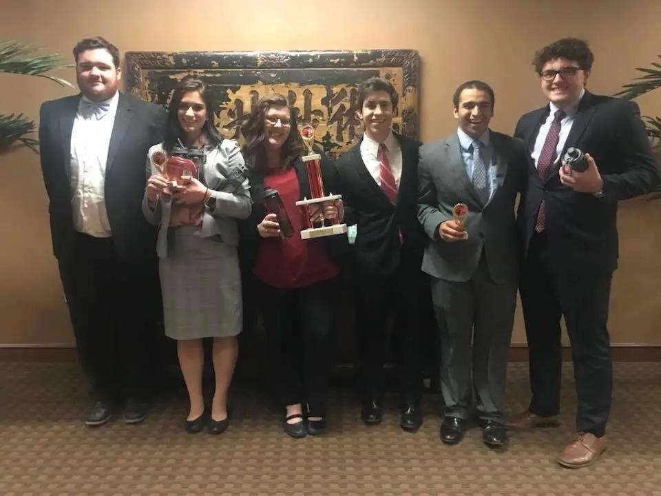 这是Shane(左一)带着学生打比赛夺冠的留影