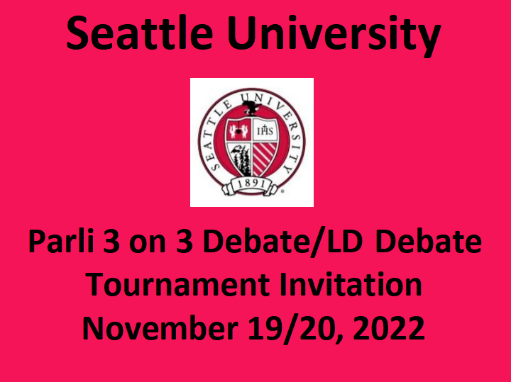 “We welcome you to a speech and debate tournament hosted by Seattle University featuring 4 rounds of debate and 3 rounds of speech”