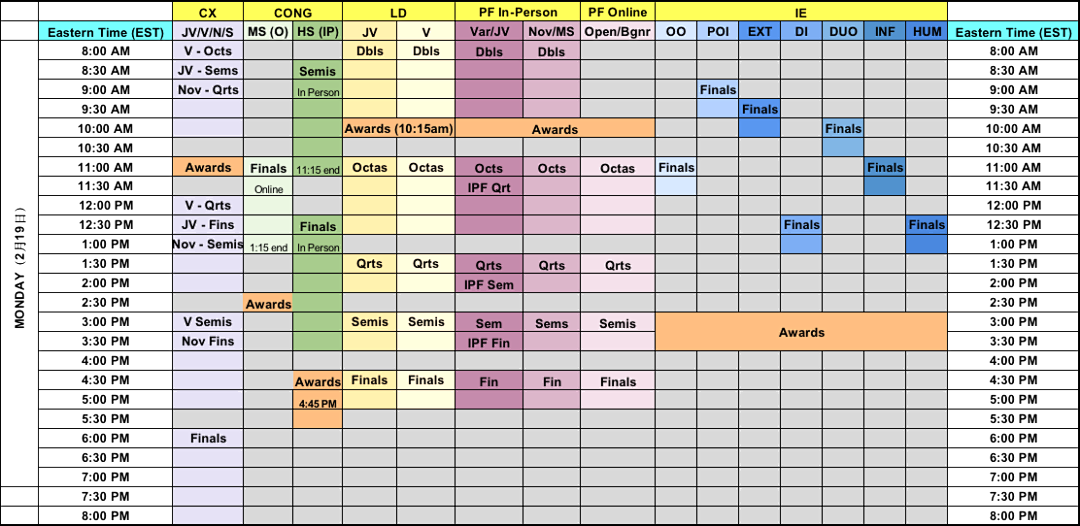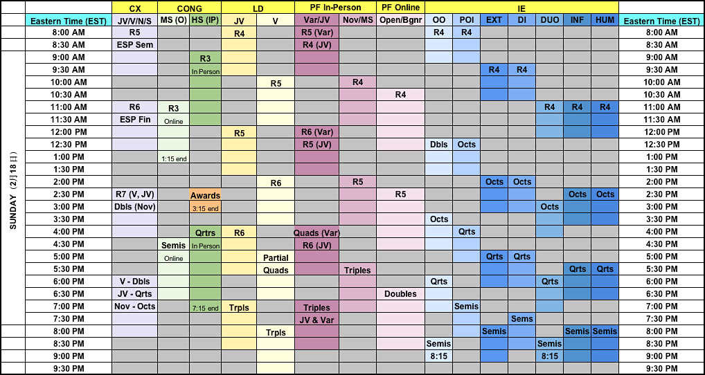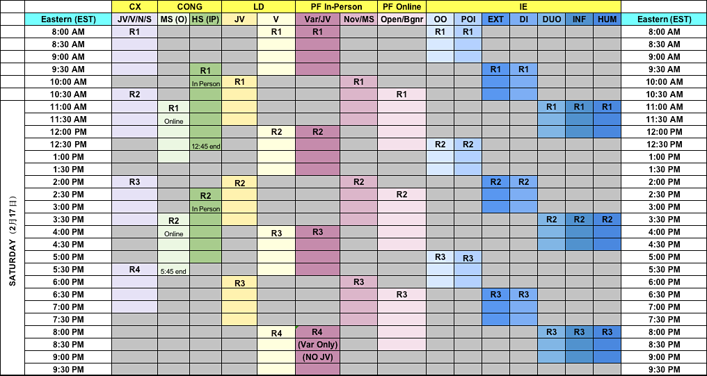 Beginner Public Forum and Open Public Forum:5 preliminary rounds, clear to Doubles.