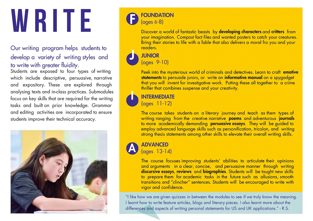 基础班:为零基础或有基本培训或参赛经历的学生安排,通过基础课程的学习,了解什么是辩论及基本的辩论赛制,学会写稿。让学生针对某个问题各抒己见,从发表自己的看法,到跟别人辩论。辩论教练会从日常交流的潜在论点出发,帮助学生更好地理解我们在辩论中应该干什么?辩论为了什么而辩?如何说服对方?在辩论赛中如何分析辩题,如何建立论点,如何写constructive speech,如何进行rebuttal……