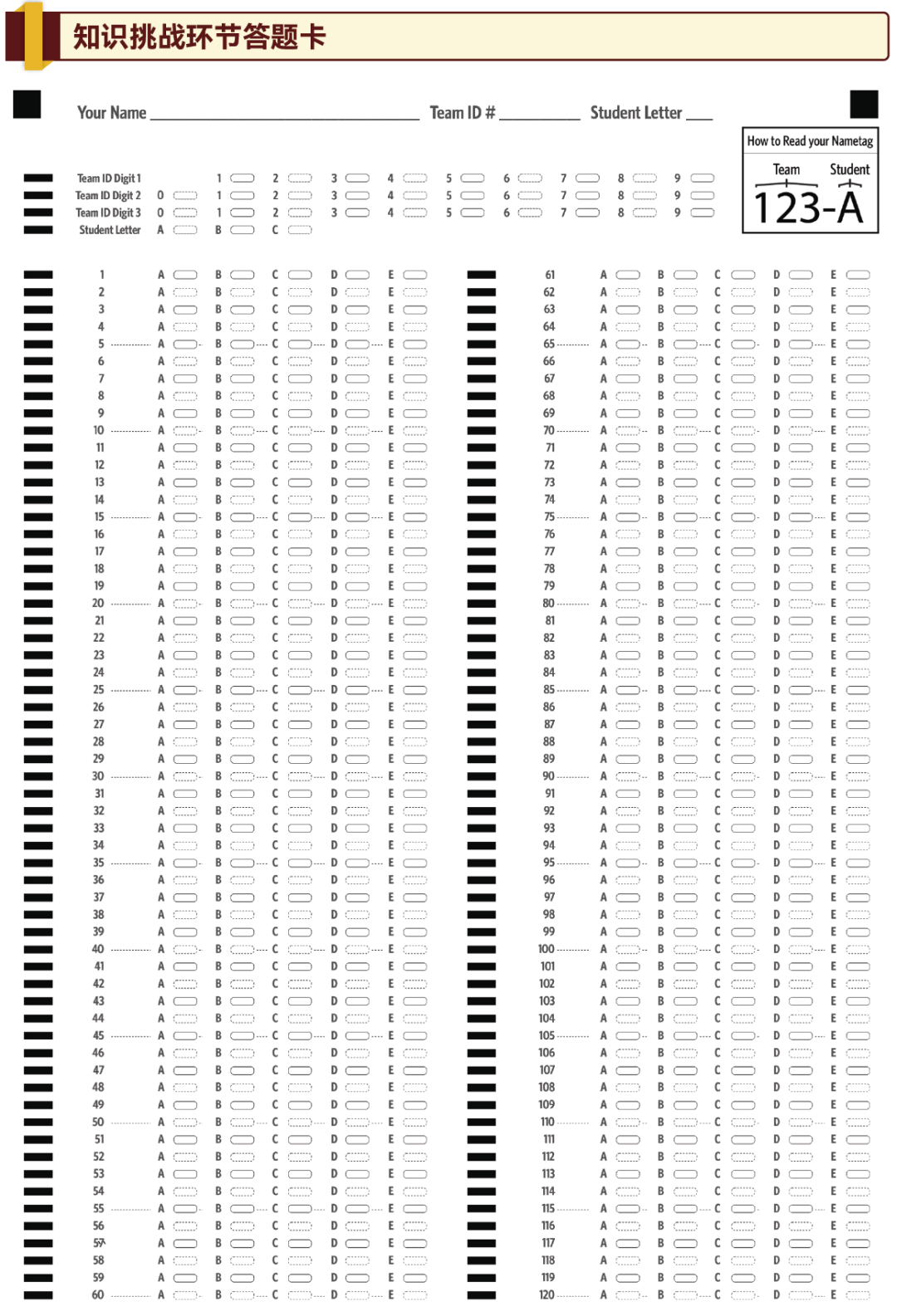 每个选手将会领取印有自己Team ID的答题卡,需要注意核对。