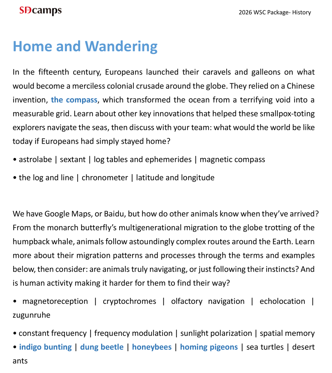 WSC世界学者杯,每年紧扣一个主题(Theme),借助跨学科(Subjects)及主题性探究式等别具一格的学习形式,引领 “学者” 们深度钻研六大学科领域,并展开激烈竞技。